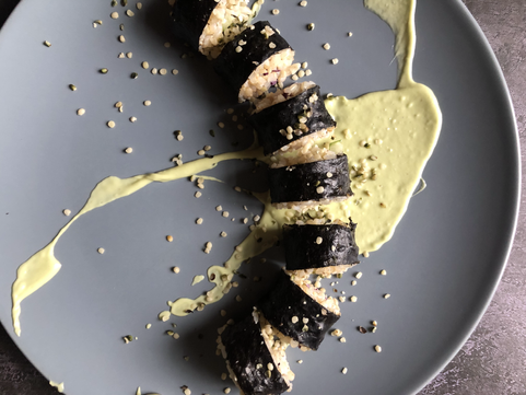 PLANT BASED BROWN RICE SUSHI. AVOCADO WASABI HEMP DIP - Hempika